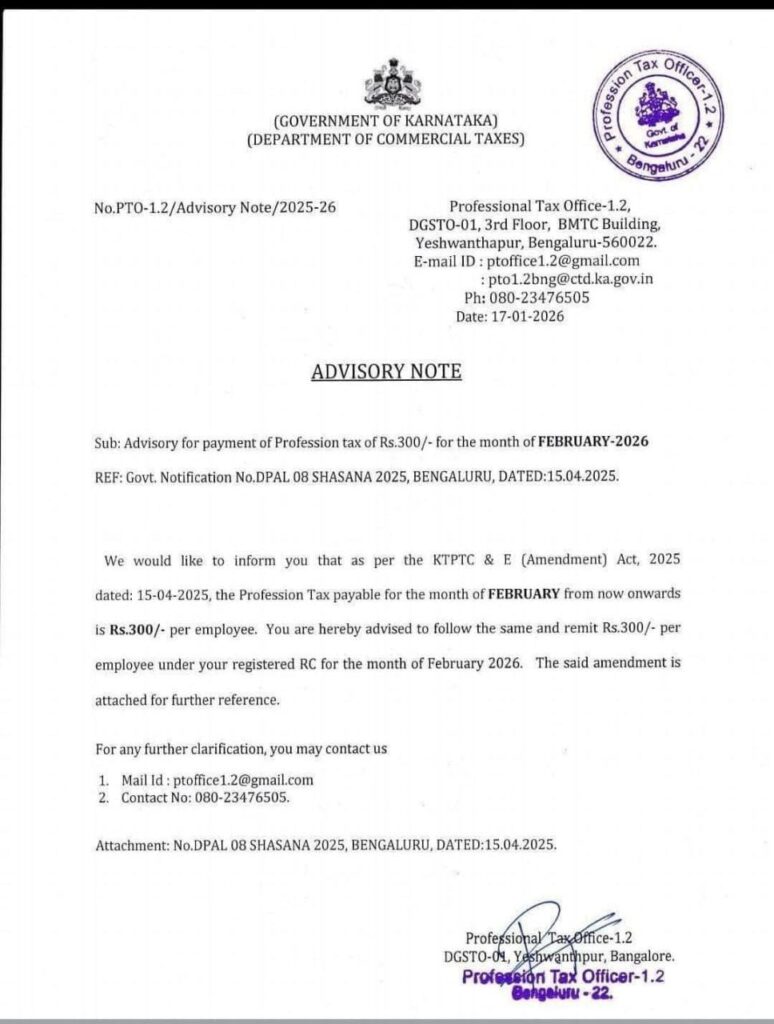 In Karnataka, the tax is governed by the Karnataka Tax on Professions, Trades, Callings, and Employments Act, 1976, and is amended regularly through state budgets/notifications. PT must be deducted and paid to the government based on the applicable slab and statutory requirements.